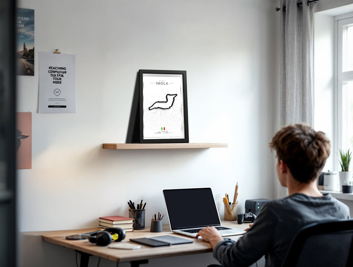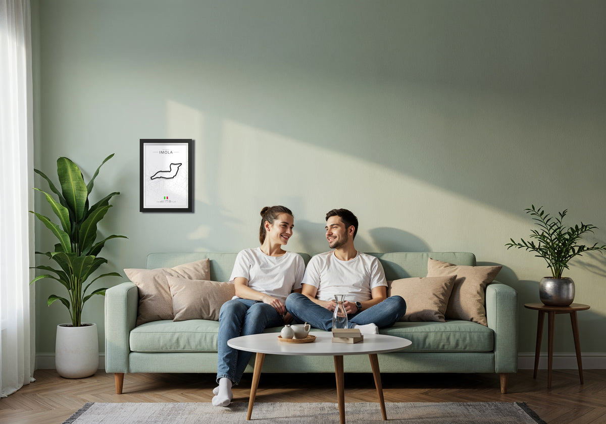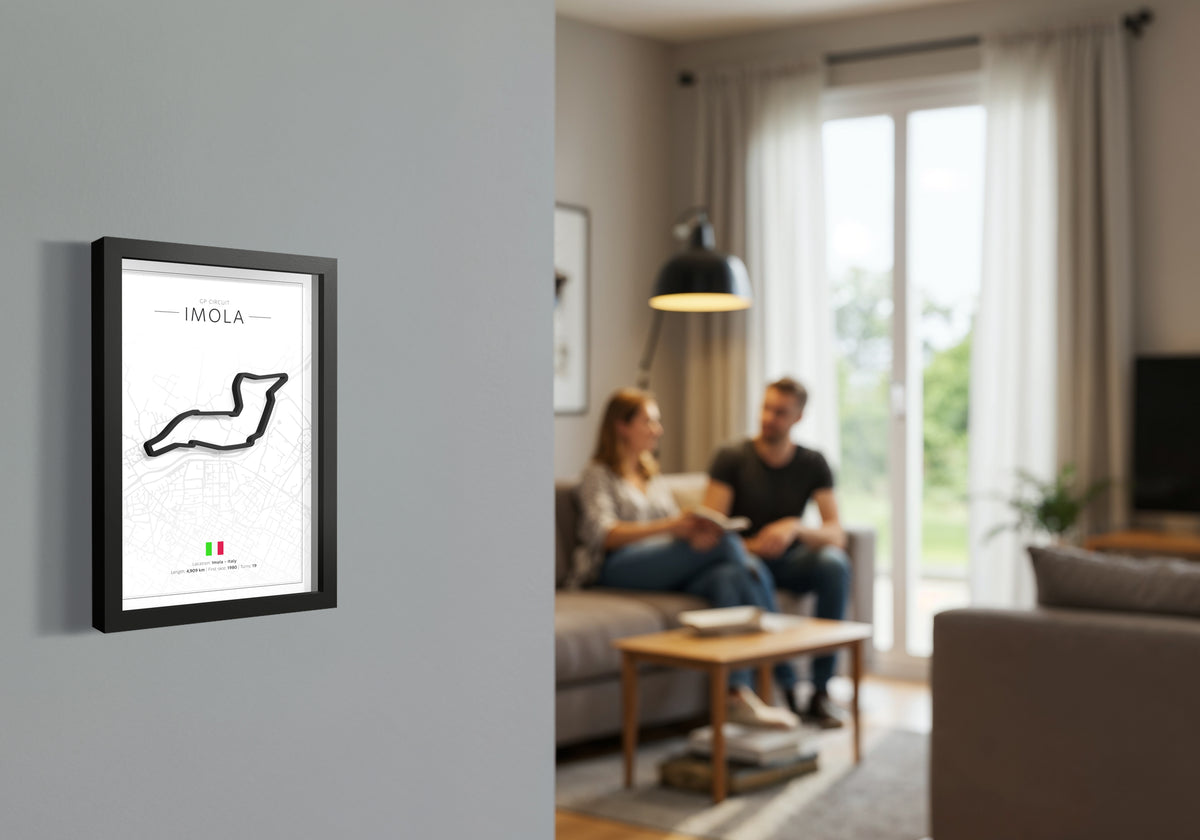 Add iconic motorsport vibes to your space with this black framed Imola artwork