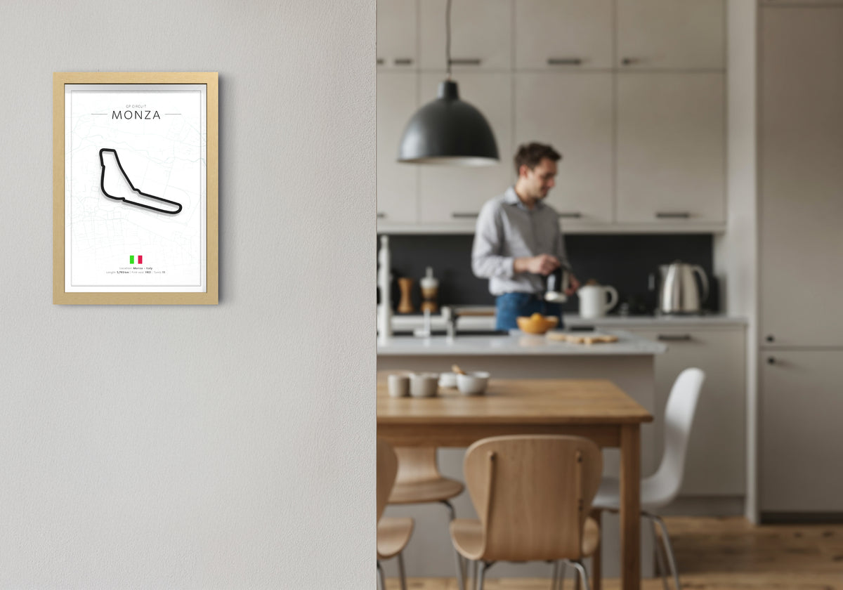 Experience the thrill of Monza with this oak-framed 3D circuit art