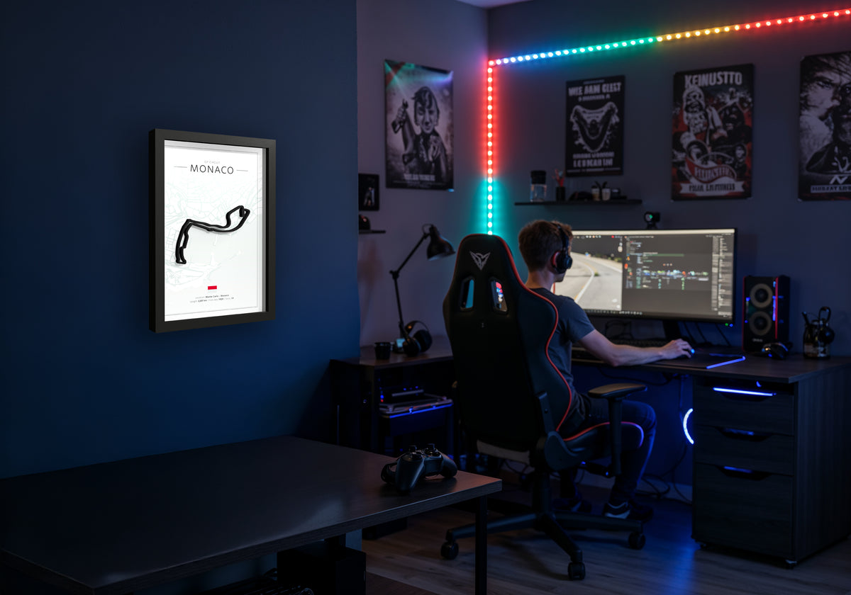 Looking for the perfect gift for a racing fan or a subtle way to add motorsport flair to your space? This 3D printed artwork features the iconic Monaco circuit presented in a deep black wooden frame.