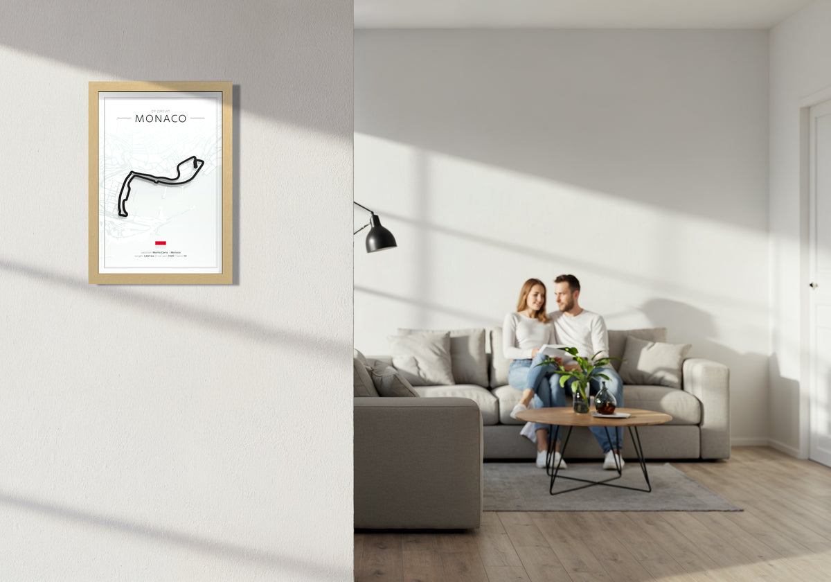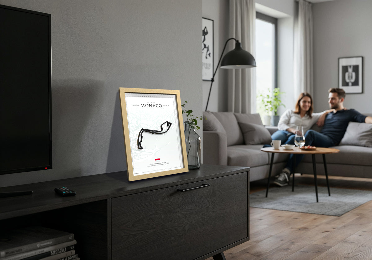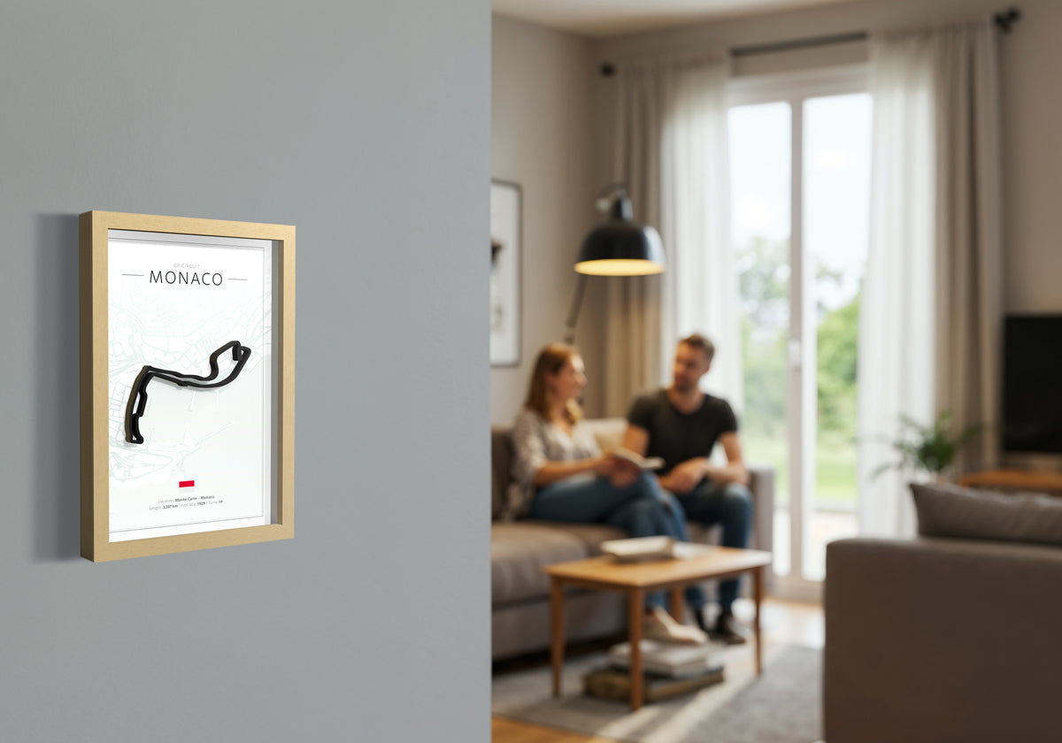 Looking for the perfect gift for a racing fan or a stylish way to bring motorsport energy into your home? This 3D printed wall art features the legendary Monaco circuit, beautifully presented in a deep oak color wooden frame.