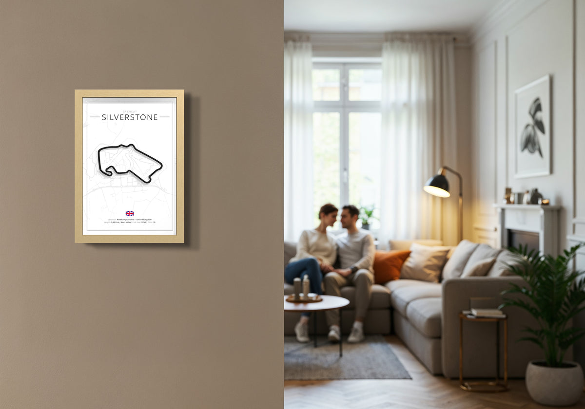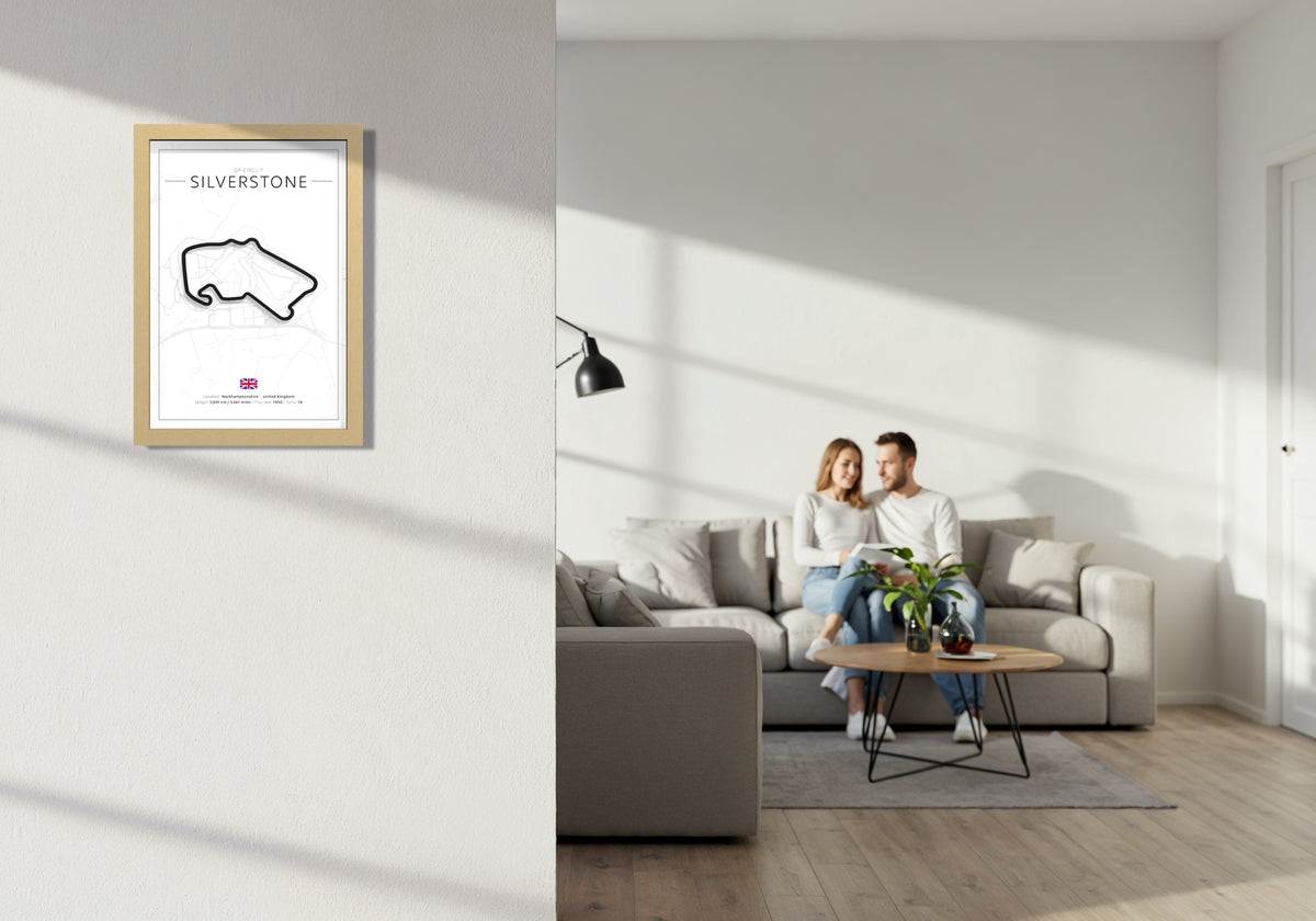 This 3D Silverstone circuit artwork is made for racing enthusiasts who appreciate detail and design. Mounted in a deep oak-colored wooden frame, it combines craftsmanship with a minimalist motorsport look. Whether standing on a shelf or hanging on your wall, this piece adds subtle race vibes to any room.